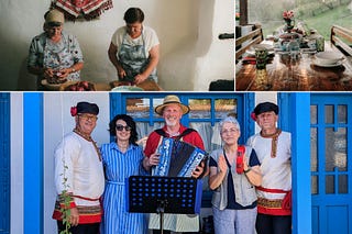 Oana, mama și bunica ei gătesc mâncăruri tradițional-bucovinene în curtea bunicii din satul Pojorâta, Suceava.